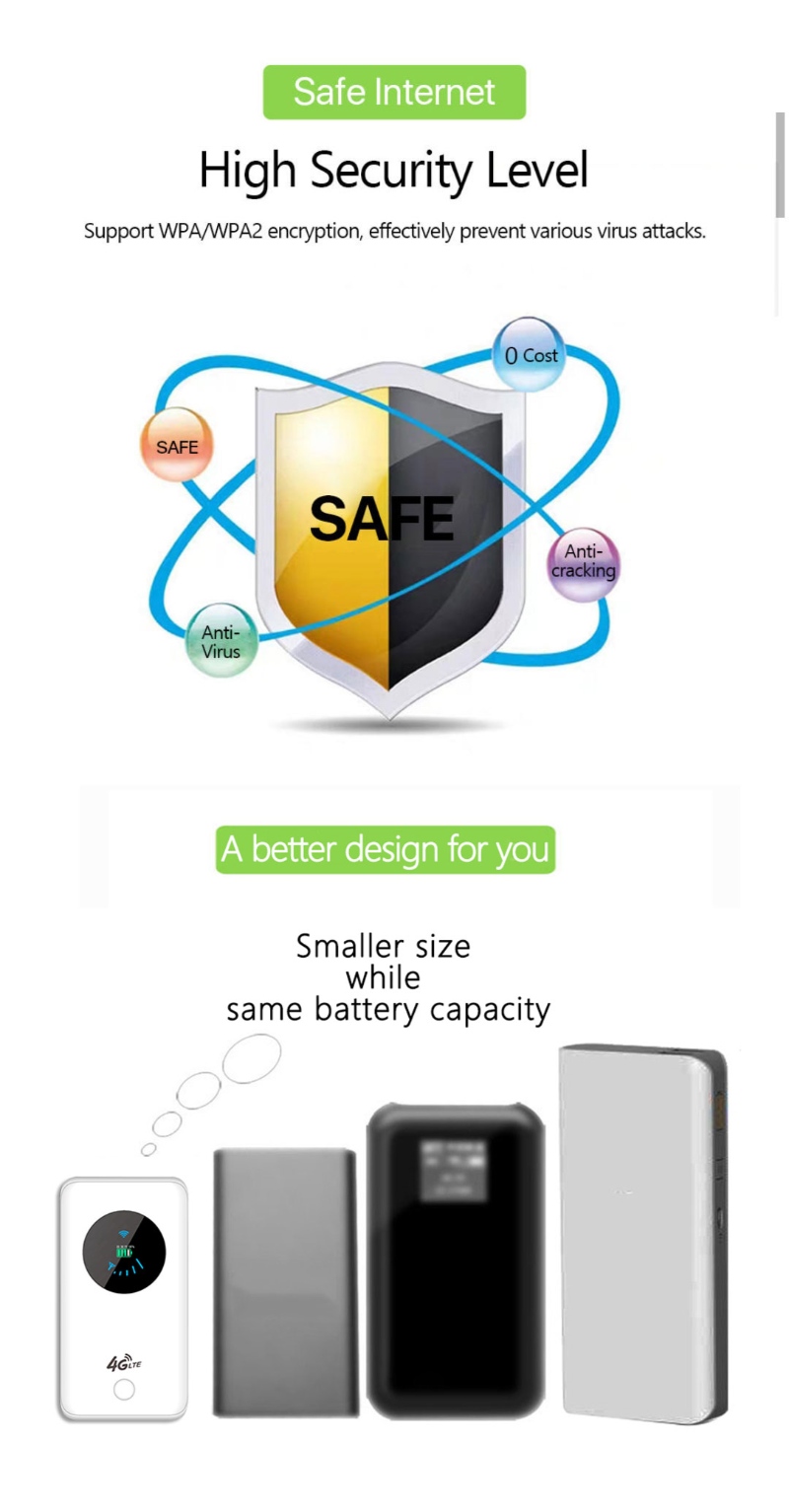 2.High Stability: This portable internet hotspot guarantees network speed and stability, and does not rely on network cables.